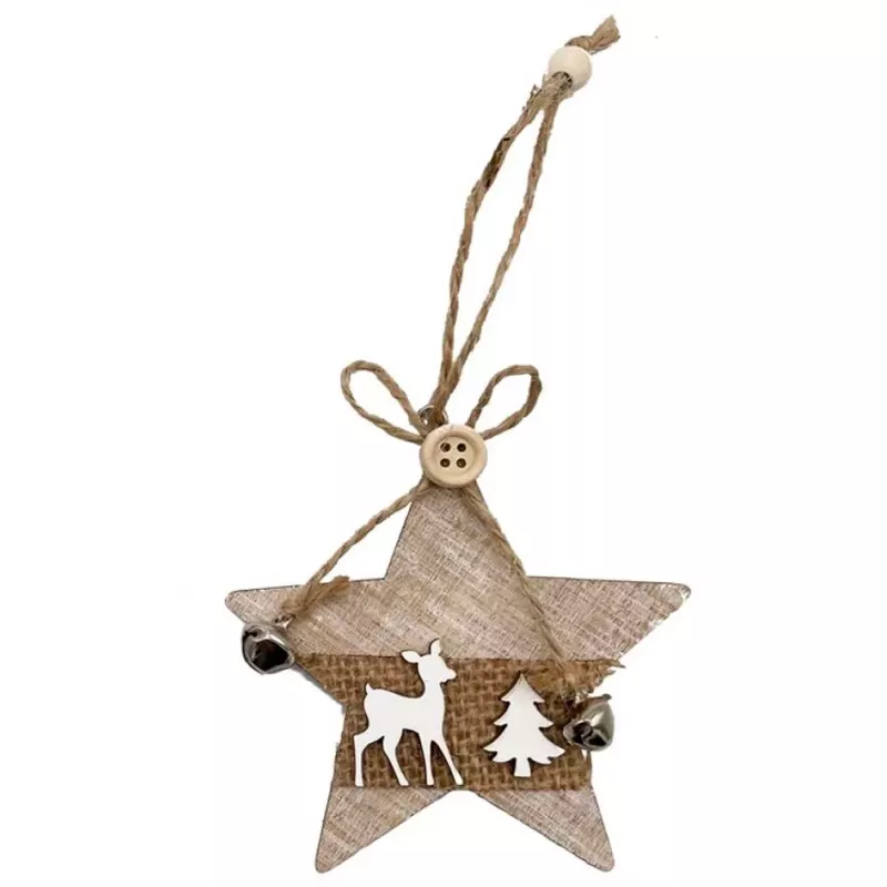 Fabricado en madera natural, este adorno cuenta con una cuerda resistente para colgarlo fácilmente y está adornado con cascabeles que emiten un suave tintineo característico de la Navidad, aportando un encanto adicional a tu decoración. Cada pieza se entrega en un modelo aleatorio, agregando un elemento de sorpresa y exclusividad a tu compra.