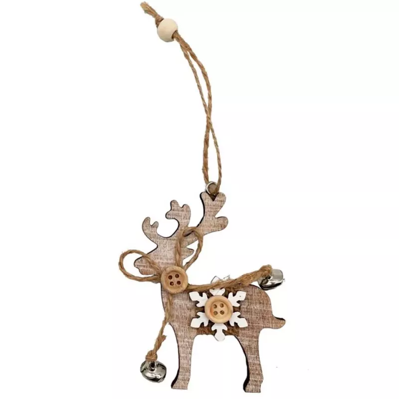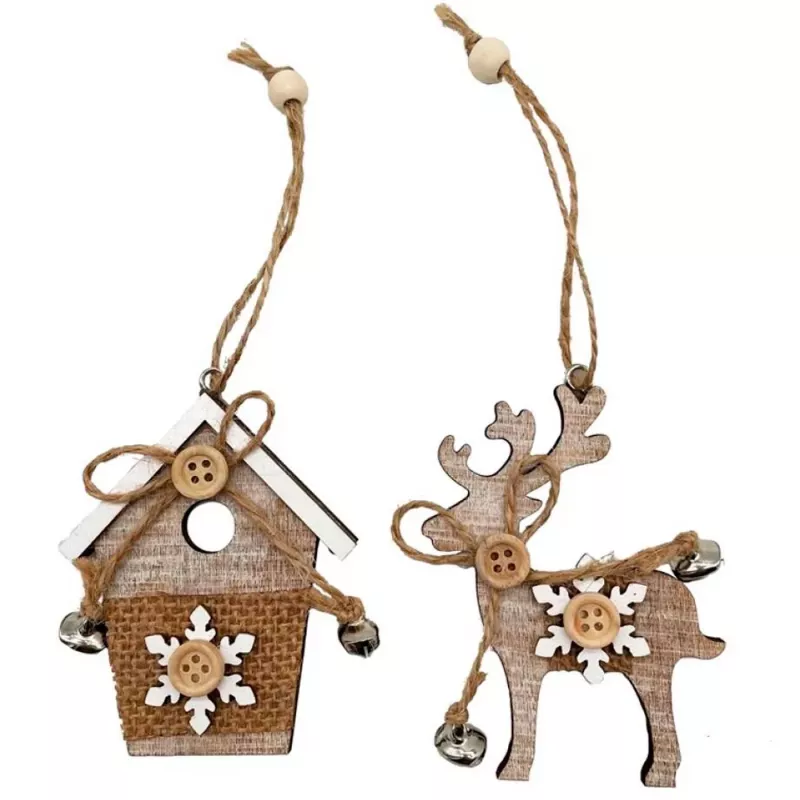 Agrega un toque acogedor y festivo a tu hogar con el adorno colgante de madera Tradineur. Este encantador detalle navideño, disponible en forma de reno o casa, está cuidadosamente diseñado para complementar la decoración típica de la temporada. Su tamaño compacto de 8,5 x 6,5 cm lo hace perfecto para colgar en puertas, árboles de Navidad o paredes, aportando un ambiente cálido y alegre dondequiera que lo coloques.