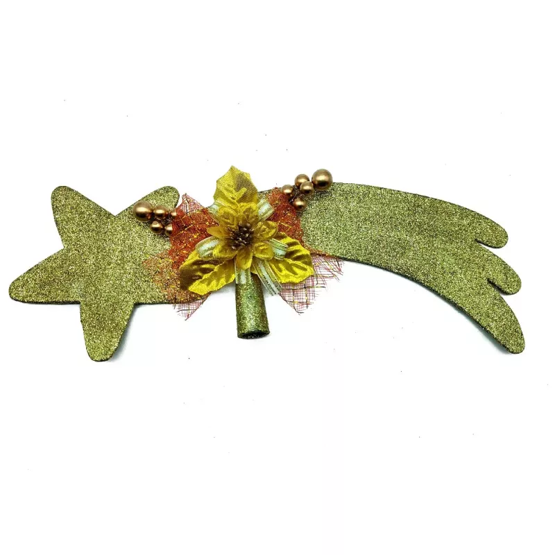 Agrega un toque mágico y brillante a tu árbol de Navidad con la Estrella Cometa Tradineur. Esta encantadora decoración, diseñada cuidadosamente para la temporada navideña, combina la forma clásica de una estrella con un delicado motivo de flor que realza su belleza y elegancia.