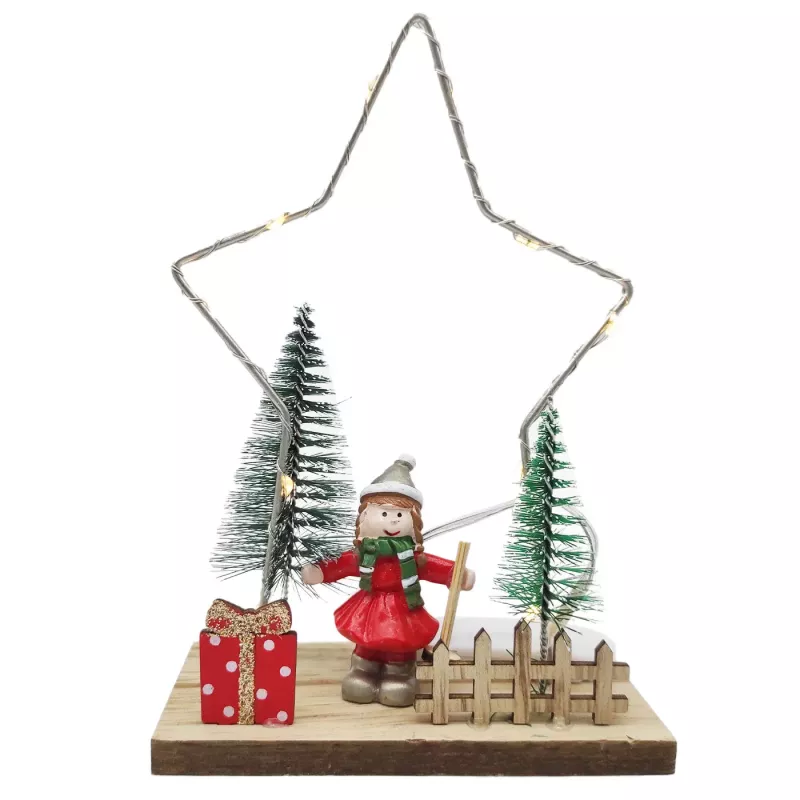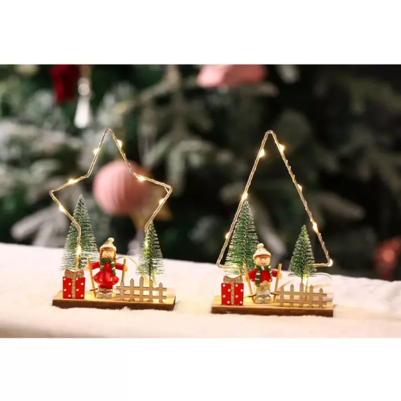 Ilumina y ambienta tus espacios durante las fiestas navideñas con la encantadora figura Tradineur, una pieza decorativa diseñada para aportar calidez y magia a tu hogar. Esta figura navideña, disponible en dos modelos aleatorios, estrella o pino luminoso, combina materiales de alta calidad como madera, resina y metal, creando un adorno resistente y de aspecto elegante que se integra perfectamente en cualquier decoración festiva.