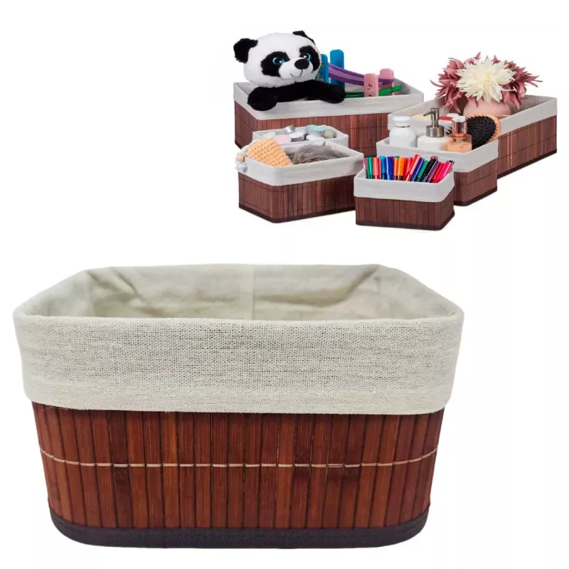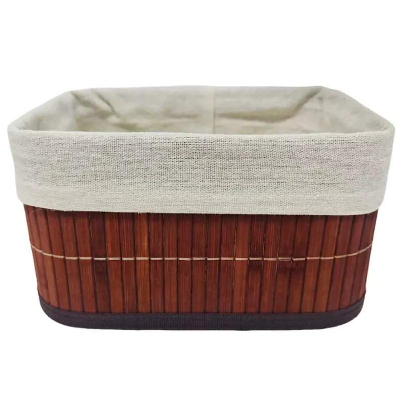 Cesta rectangular de bambú con forro interior extraíble y lavable color caoba 26x20x14 cm ligera y práctica para organizar