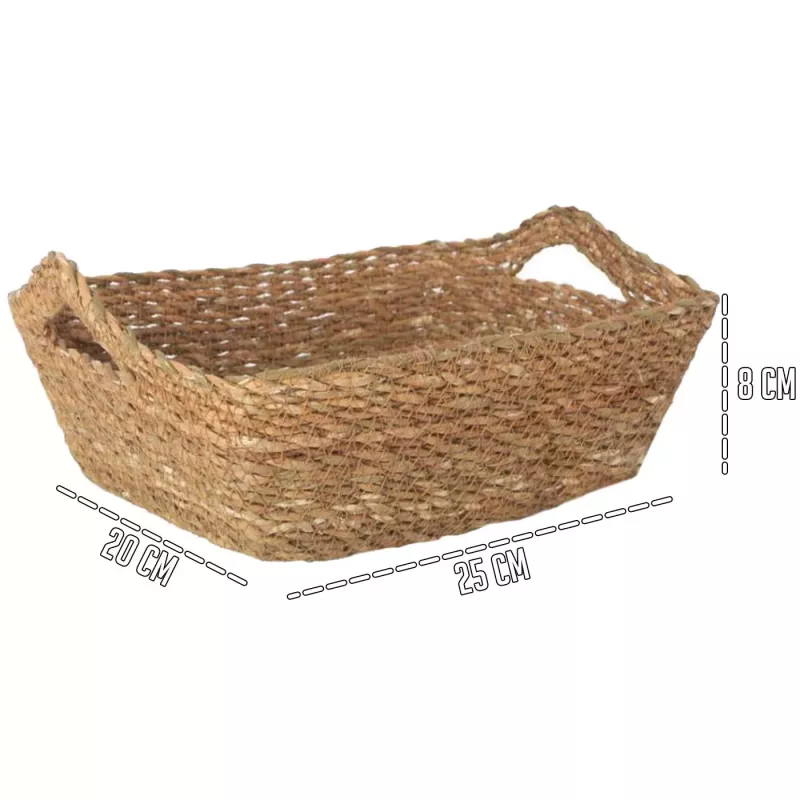 Descubre la elegancia y funcionalidad de nuestra cesta de mimbre con asas, un complemento perfecto para cualquier hogar. Con un tamaño aproximado de 8 x 20 x 25 cm (Alto x Ancho x Profundo), esta cesta combina un diseño compacto con una capacidad sorprendente, ideal para almacenar y organizar tus pertenencias de manera estilizada. Elaborada con mimbre de alta calidad, su tejido artesanal asegura durabilidad y resistencia, mientras que sus asas robustas permiten un fácil transporte.
