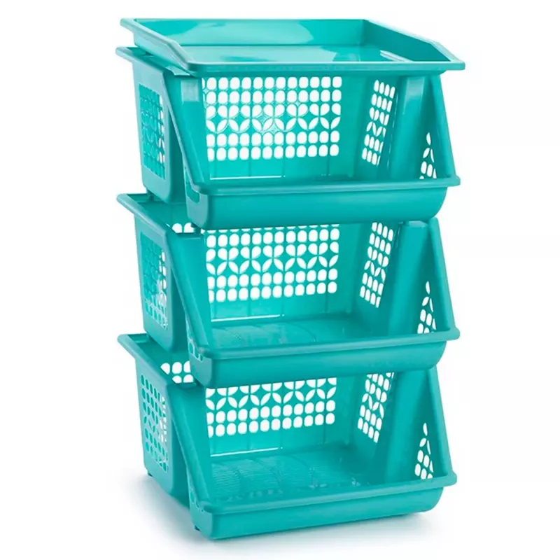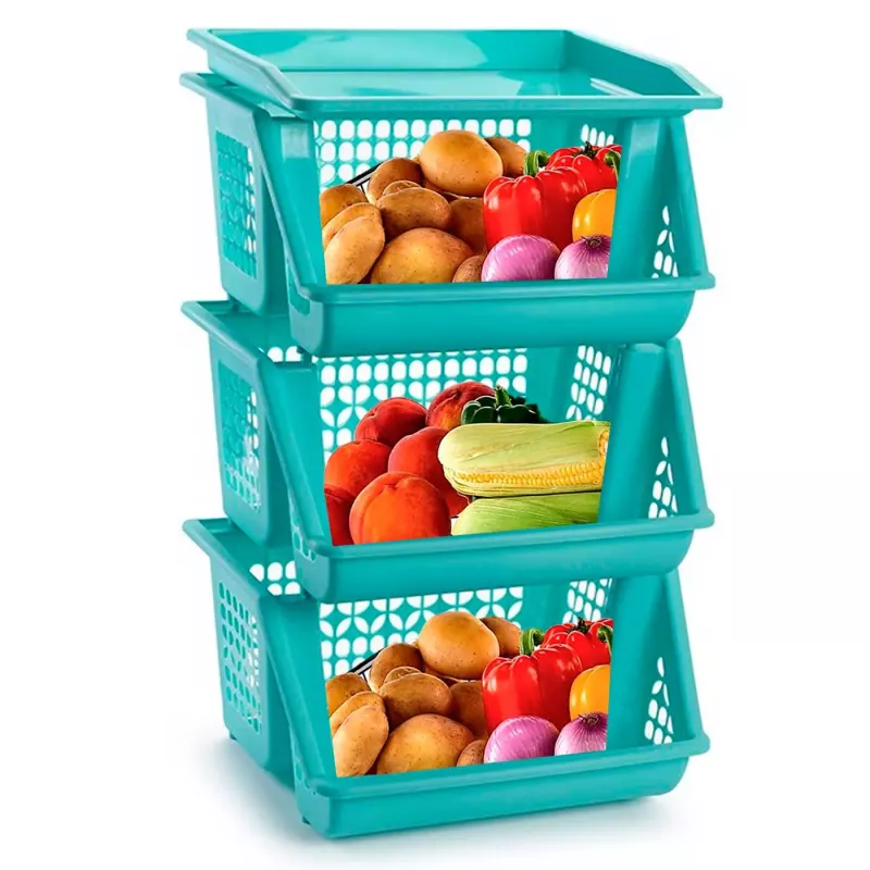 Fabricado con materiales resistentes, este verdulero es un estante multiusos que permite apilar las cestas de forma segura, brindando versatilidad y facilitando la organización de tus espacios. Gracias a su estructura abierta, permite una adecuada ventilación, lo que es perfecto para conservar frescos los alimentos. Además, su color turquesa aporta un toque de frescura y estilo a cualquier ambiente, ya sea la cocina, el baño, el despacho o la sala de juegos.