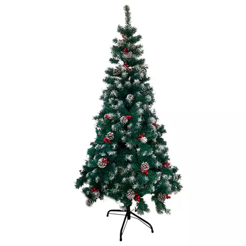 El árbol de Navidad Tradineur es la opción perfecta para quienes buscan un árbol verde y frondoso que combine la belleza natural con la practicidad de un diseño artificial. Con sus 150 cm de altura, este árbol destaca por sus realistas puntas blancas que simulan la escarcha invernal, y sus decorativas piñas y bayas que aportan un toque acogedor y tradicional a cualquier espacio. Ideal para crear un ambiente navideño cálido y sofisticado sin renunciar a la facilidad de montaje y durabilidad.