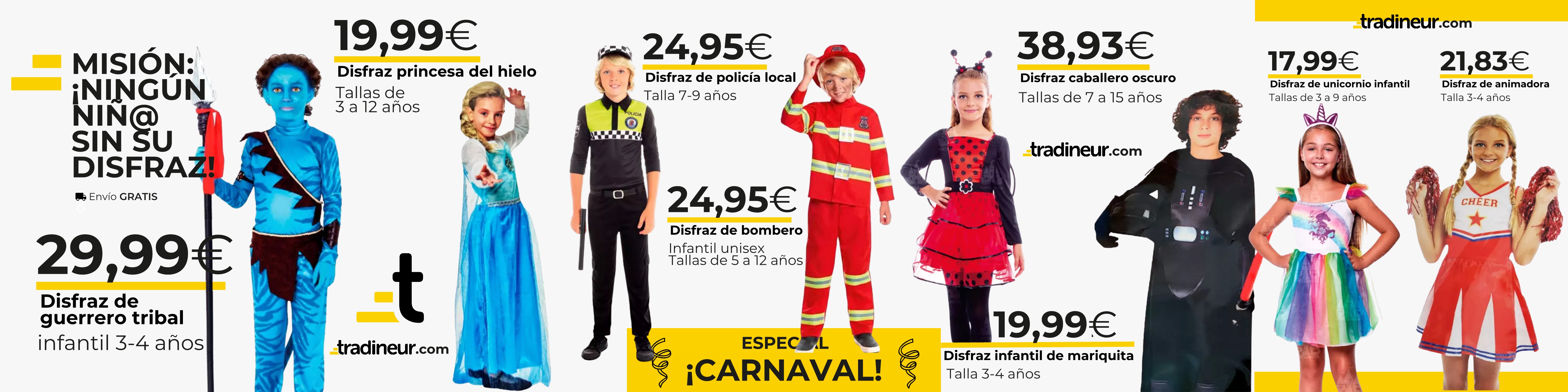 Sabemos que cada persona vive el Carnaval a su manera. Por eso, en Tradineur contamos con una amplia variedad de disfraces y accesorios pensados para todas las edades y estilos.