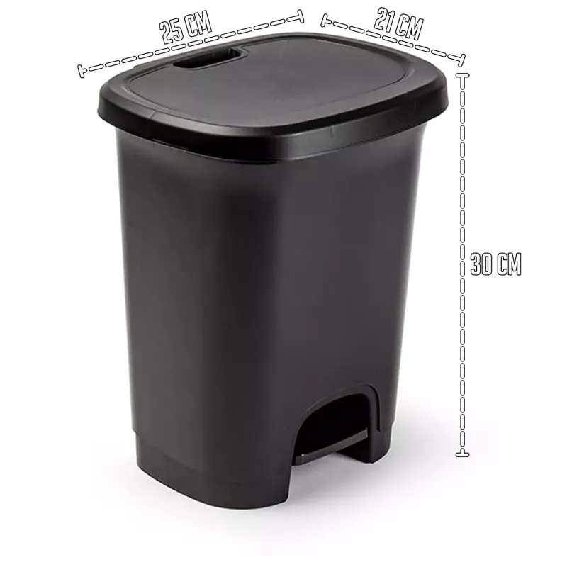 Con una capacidad de 8 litros, este cubo permite desechar residuos de manera eficiente sin ocupar demasiado espacio. Su mecanismo con pedal facilita la apertura sin necesidad de usar las manos, garantizando una manipulación higiénica y cómoda en todo momento. Las dimensiones de 30 x 25 x 21 cm lo convierten en un aliado ideal para ambientes con espacio limitado.