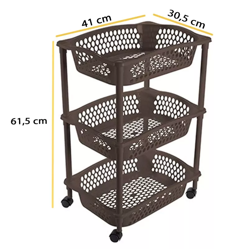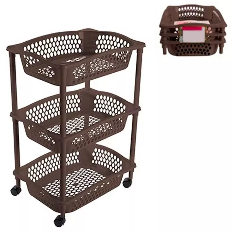 Presentamos el elegante y práctico carrito verdulero en un atractivo color marrón, ideal para mantener organizado tu hogar. Su diseño versátil permite almacenar todo tipo de alimentos como frutas y verduras, así como también otros objetos de uso diario, como productos de aseo. Este carrito es realmente multiusos, permitiéndote colocarlo donde más lo necesites, ya sea en la cocina, el baño o cualquier otra habitación.