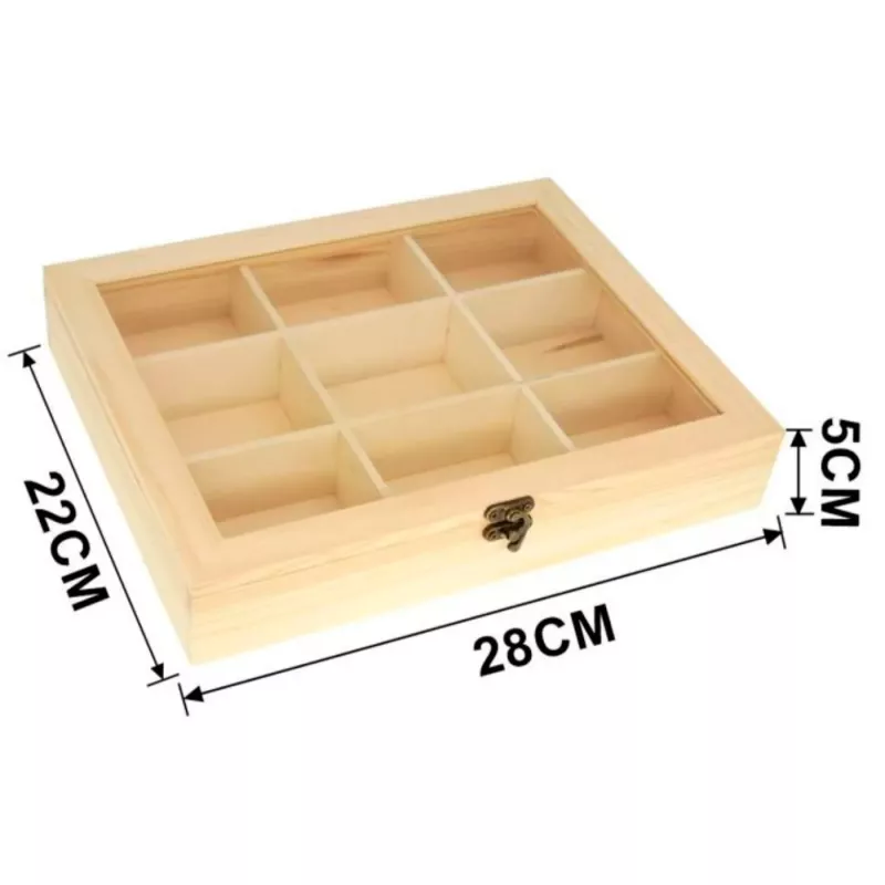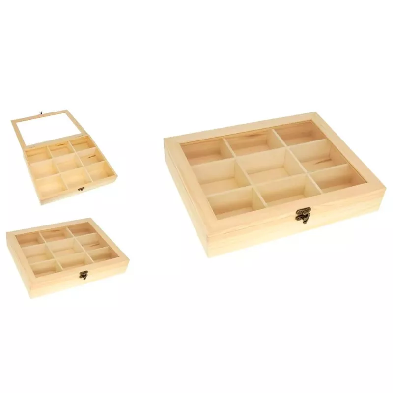 Descubre la elegancia y funcionalidad con la Tradineur - Caja de madera con 9 compartimentos y tapa con cristal, el aliado perfecto para organizar y exhibir tus joyas con estilo. Fabricada con madera de alta calidad, esta caja combina un diseño clásico y práctico, ideal para quienes buscan mantener sus collares, anillos, pendientes y otras piezas favoritas siempre ordenadas y a la vista.