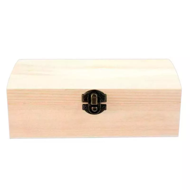 Fabricada con madera de alta calidad, esta caja combina resistencia y estilo, destacando por su diseño detallado que imita un baúl clásico. La tapa ajustada asegura que tus pertenencias se mantengan seguras, mientras su tamaño compacto facilita su colocación en escritorios, estantes o mesitas de noche.