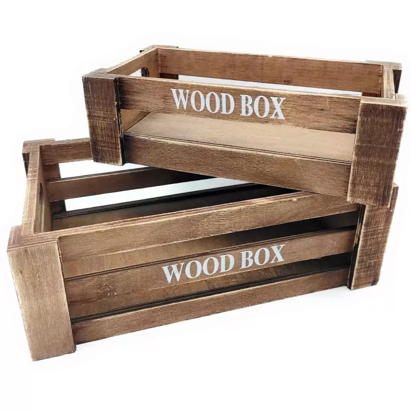 Descubre el set Tradineur, compuesto por dos elegantes cajas de madera con asas que combinan funcionalidad y estilo para organizar cualquier espacio de tu hogar. Estas cajas multiusos, en tonos marrones cálidos, son ideales para almacenar desde herramientas y accesorios de pintura hasta utensilios de cocina o pequeños objetos decorativos, facilitando el orden y aportando un toque natural y sofisticado.