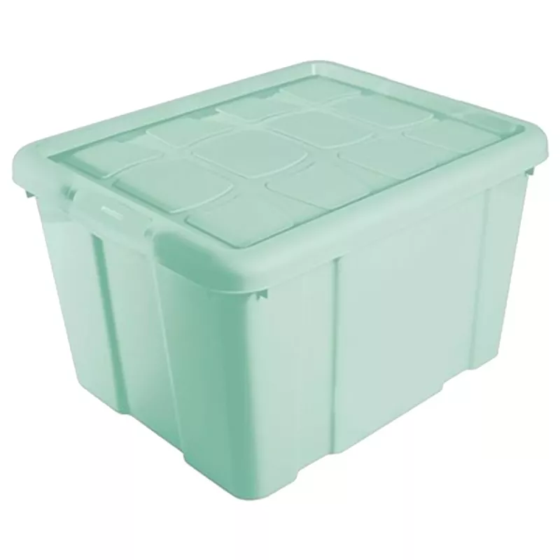 La caja cuenta con una tapa que asegura el contenido, manteniéndolo protegido del polvo y la suciedad. Su elegante color verde pastel aporta un toque moderno y suave que se adapta a cualquier decoración. Con medidas de 21,5 x 39,6 x 29,6 cm, este contenedor es ideal para quienes buscan practicidad sin renunciar al estilo. Descubre cómo mantener tu espacio ordenado y libre de desorden con la caja de almacenamiento Tradineur.