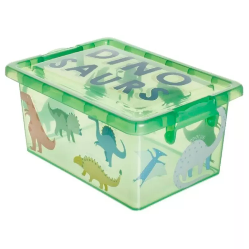 Organiza tu hogar con estilo y funcionalidad gracias a la caja de plástico Tradineur con cierres laterales de clip. Fabricada en España, esta caja de almacenaje multiusos es ideal para mantener tus objetos ordenados de forma segura y práctica. Con un diseño divertido de dinosaurios en color verde, aporta un toque alegre a cualquier espacio, ya sea el dormitorio, la zona de juegos, el despacho o cualquier rincón que necesite orden.