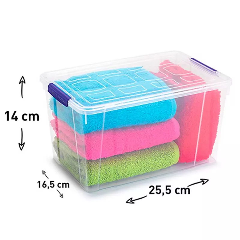 Con una capacidad de 4 litros, esta caja tiene unas medidas exteriores con tapa de 14 x 26 x 17 cm (alto x ancho x profundo) y unas medidas interiores de 12 x 24 x 15 cm (alto x ancho x profundo). Gracias a su tamaño ideal, es perfecta para almacenar una variedad de objetos, desde juguetes y libros, hasta documentos importantes y recuerdos preciosos. No tengas dudas y adquiere esta caja organizadora para que puedas mantener tus espacios siempre ordenados y limpios.