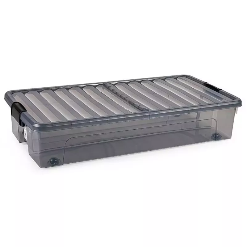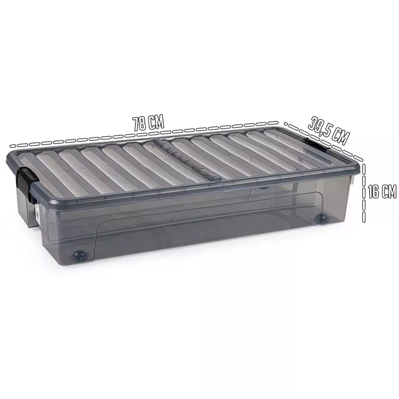 Optimiza el espacio de tu hogar con la caja de almacenamiento Tradineur modelo KLIP bajocama, diseñada para ofrecer una solución práctica y eficiente bajo tu cama. Fabricada en plástico resistente, esta caja te permitirá mantener tus pertenencias organizadas y protegidas gracias a su capacidad de 35 litros y cierre hermético que evita la entrada de polvo y humedad.