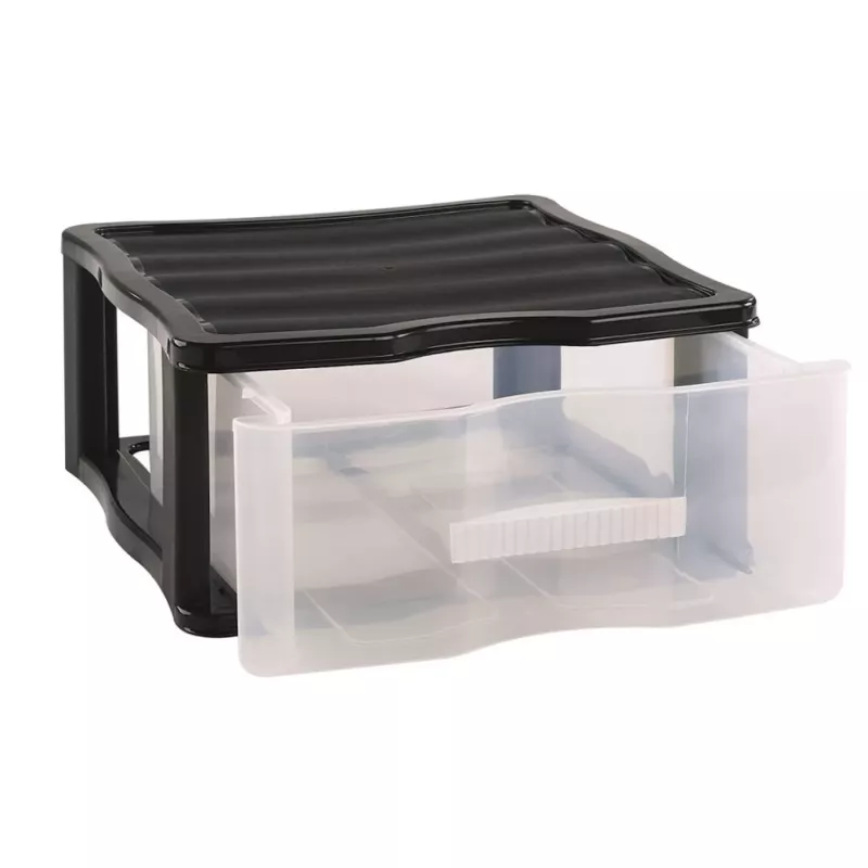 La cajonera Wagon de plástico en color negro es la solución perfecta para mantener tus espacios ordenados y funcionales. Con un diseño compacto y moderno, esta cajonera cuenta con un cajón transparente que facilita la visualización del contenido sin necesidad de abrirlo. Sus dimensiones de 17 x 37 x 39,3 cm la hacen ideal para colocar folios, documentos y otros objetos esenciales tanto en oficinas como en el hogar.