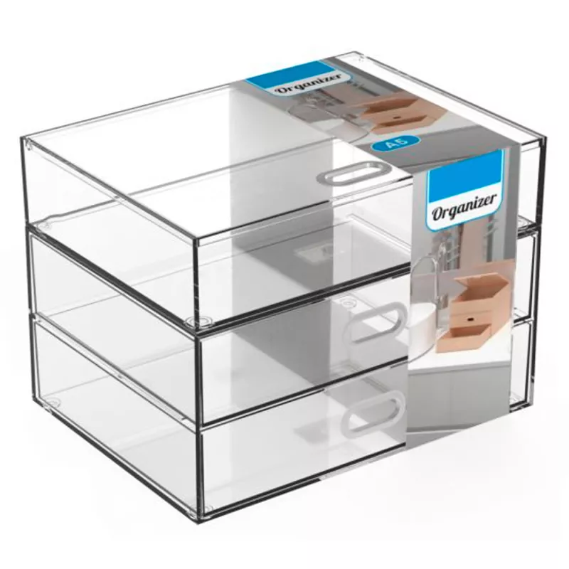 Organiza tus pequeños objetos de manera práctica y elegante con la mini cajonera Tradineur A5 transparente. Este compacto organizador cuenta con 3 niveles que te permiten separar y clasificar cosméticos, maquillaje, accesorios de costura, tornillos y otros artículos pequeños. Fabricada en plástico de alta calidad en España, su diseño resistente y transparente facilita la visualización rápida del contenido, manteniendo todo ordenado y al alcance de la mano.