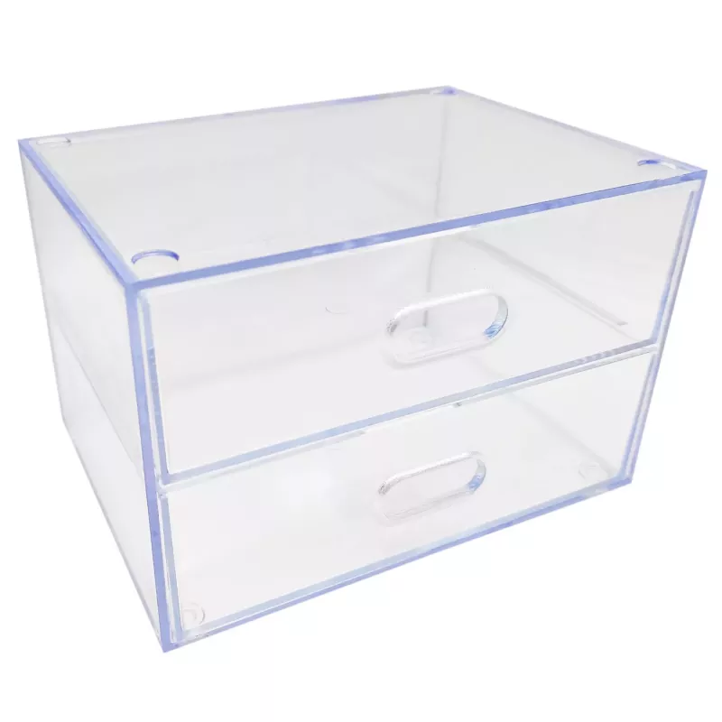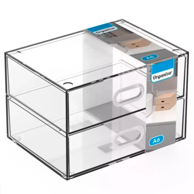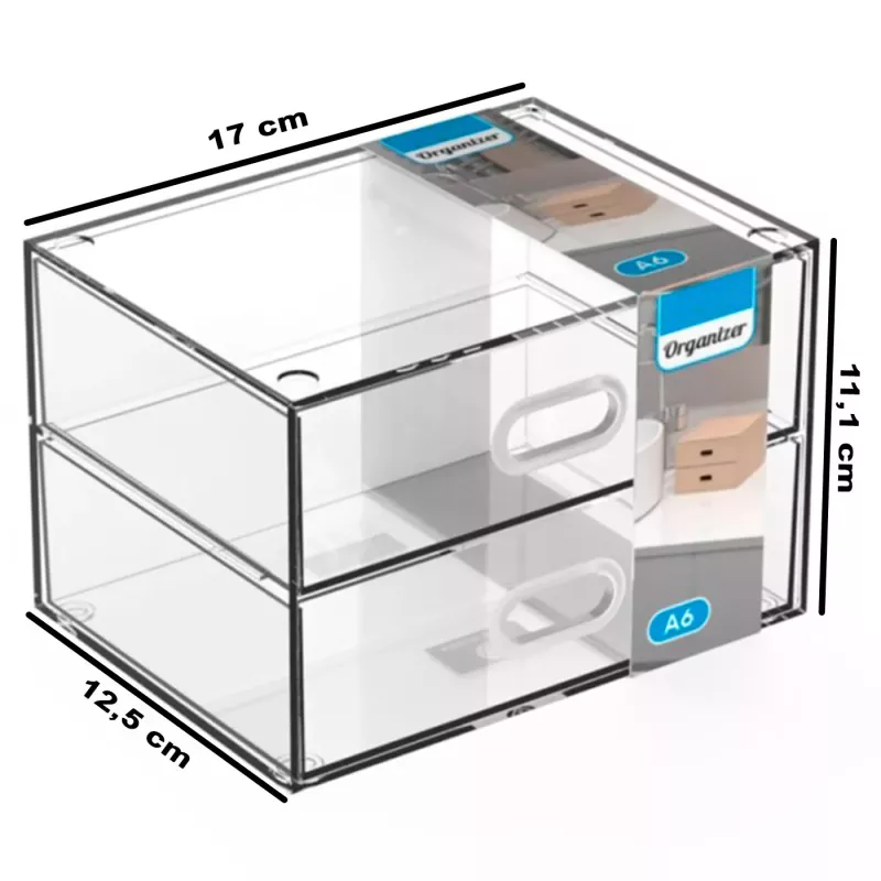 Organiza tu espacio de manera práctica y elegante con la mini cajonera transparente Tradineur. Diseñada en formato A6, cuenta con dos cajones espaciosos y resistentes, ideales para mantener ordenados cosméticos, maquillaje, accesorios de costura, tornillos y otros objetos pequeños. Fabricada en plástico de alta calidad en España, combina durabilidad y funcionalidad en un diseño compacto y moderno que se adapta fácilmente a cualquier escritorio, tocador o zona de trabajo.