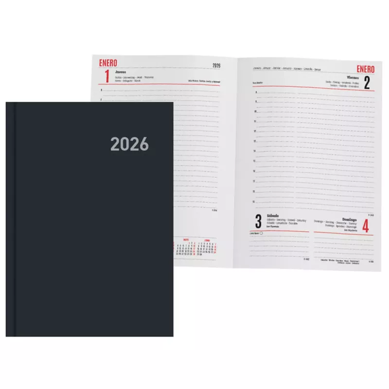 Descubre la Agenda Tradineur 2026, modelo París, el planificador ideal para organizar tu año con estilo y funcionalidad. Diseñada para acompañarte desde enero hasta diciembre, esta agenda de tapa dura en elegante color negro combina practicidad y durabilidad, perfecta para llevar contigo a todas partes.
