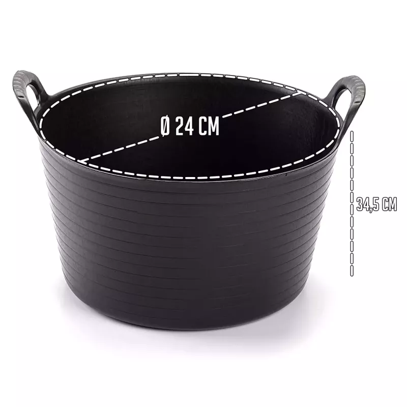 Con una capacidad de 15 litros y unas dimensiones de Ø 24 x 34,5 cm, ofrece el espacio justo para llevar desde herramientas, juguetes, hasta productos de limpieza o cualquier otro elemento que necesites transportar cómodamente. Su color negro neutro y elegante se adapta perfectamente a cualquier entorno, ya sea el hogar, el trabajo o actividades al aire libre.