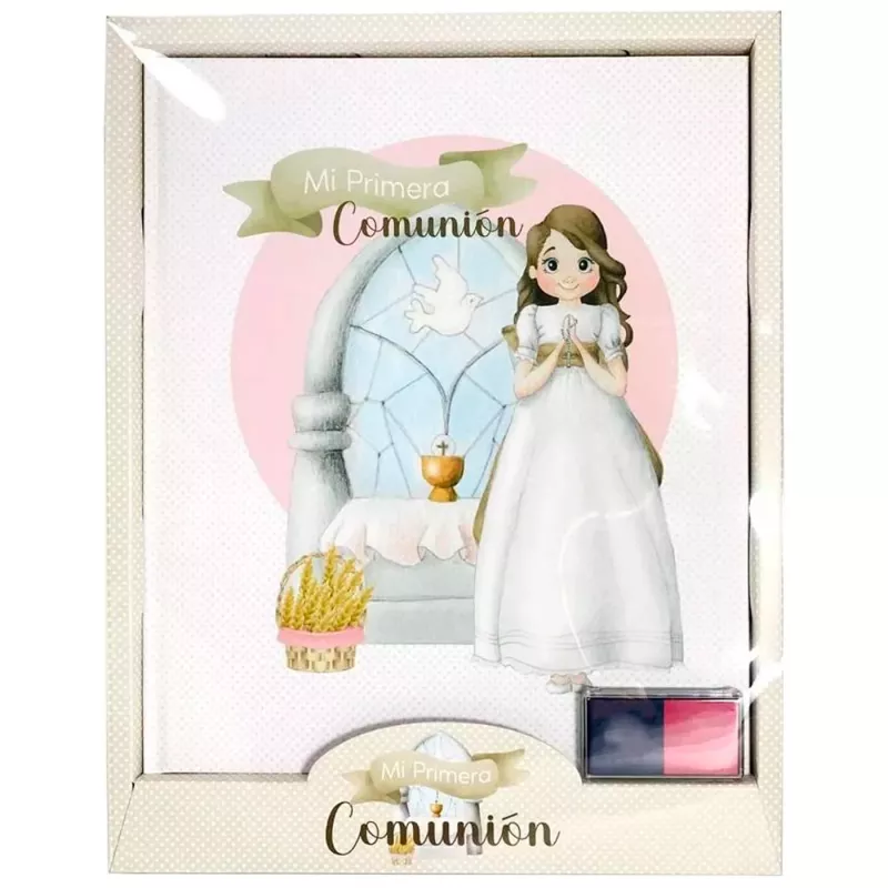 Celebra un momento único y especial con el Libro de Primera Comunión Tradineur, diseñado especialmente para niñas. Este hermoso libro de tapa dura, con dimensiones de 29 x 24,5 cm, es el recuerdo perfecto para conservar y rememorar la ceremonia de la Primera Comunión de una manera muy personal y original.