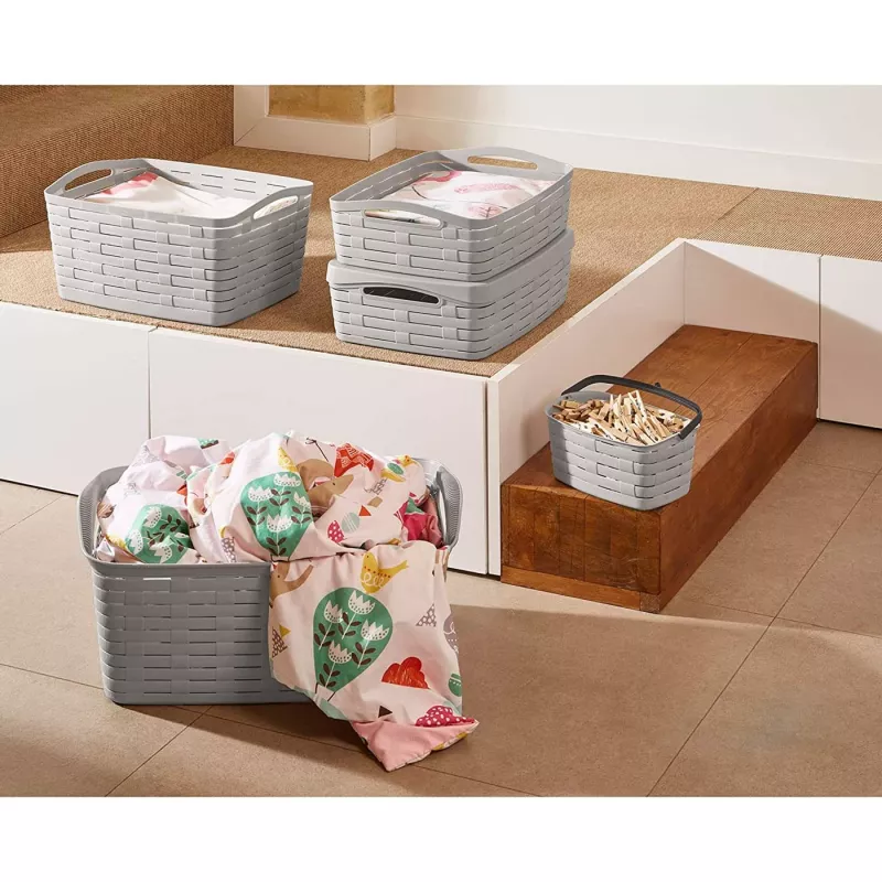 Organiza tu hogar con estilo y eficiencia con nuestra cesta rectangular con asas, fabricada en plástico de alta calidad. Con una capacidad de 35 litros y dimensiones aproximadas de 54,5 x 36 x 25,5 cm (largo x ancho x alto), esta cesta es la solución perfecta para almacenar y transportar ropa y otros artículos del hogar. Su diseño ergonómico incluye asas resistentes que facilitan su manejo y desplazamiento, proporcionando comodidad y practicidad en el día a día. La construcción en plástico duradero asegura una larga vida útil, resistiendo el desgaste del uso diario y facilitando su limpieza.