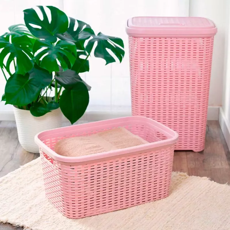 La cesta de plástico Tradineur "Rattan" es el complemento perfecto para organizar tu colada con estilo y funcionalidad. Fabricada en España, esta cesta destaca por su diseño imitativo de mimbre que añade un toque natural y elegante a cualquier espacio de lavandería o hogar. Su color rosa palo suave aporta un aire moderno y acogedor, ideal para mantener el orden sin renunciar a la decoración.