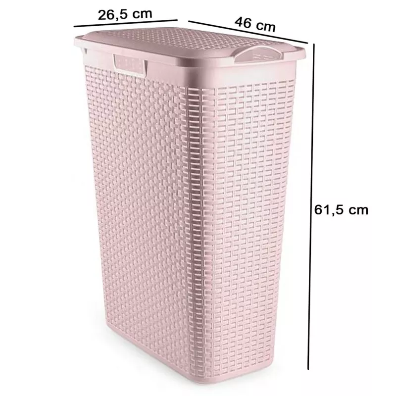 Descubre el Tradineur Cesto para Ropa Sucia diseñado para combinar funcionalidad y estilo en tu hogar. Fabricado en España, este pongotodo de plástico imita a la perfección el mimbre tradicional, aportando un toque natural y elegante a cualquier espacio. Su diseño estrecho y alargado es ideal para lugares con espacio limitado, mientras que la tapa y las asas facilitan su uso y transporte diario.