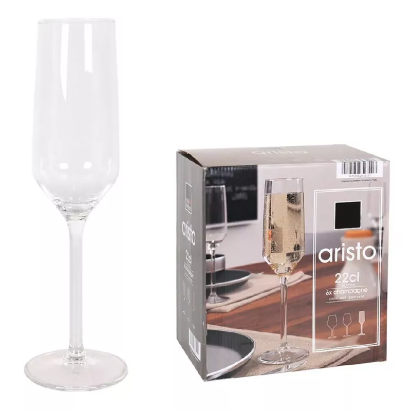 Descubre la elegancia y sofisticación en cada brindis con este set de 6 copas de champán modelo Aristo. Fabricadas en cristal liso de alta calidad, estas copas combinan un diseño moderno y atemporal que realza cualquier ocasión especial. Con una capacidad de 22 cl y una altura de 23 cm, son ideales para disfrutar de tus champanes y espumosos favoritos con estilo y distinción.