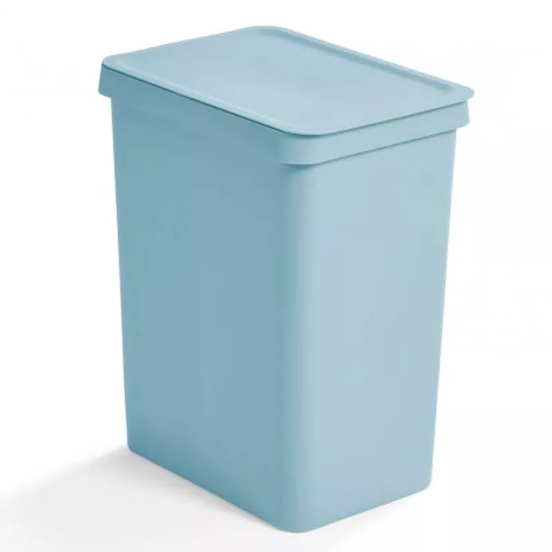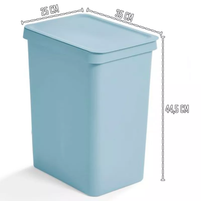 Con unas medidas de 44,5 x 35 x 25 cm, su diseño compacto permite colocarlo en espacios reducidos sin sacrificar capacidad, mientras que su tapa facilita la retención de olores y mantiene el área libre de suciedad visible. Su diseño en color azul pastel se integra fácilmente con diferentes estilos de decoración.
