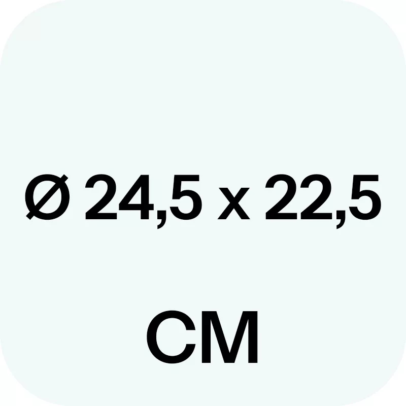 Fabricada en España con plástico resistente y de gran calidad, esta papelera está diseñada para durar. Con unas dimensiones totales aproximadas de 24,5 x 22,5 cm (diámetro superior x altura), ofrece suficiente capacidad para almacenar una gran cantidad de residuos, ayudándote a mantener tus espacios organizados y limpios.