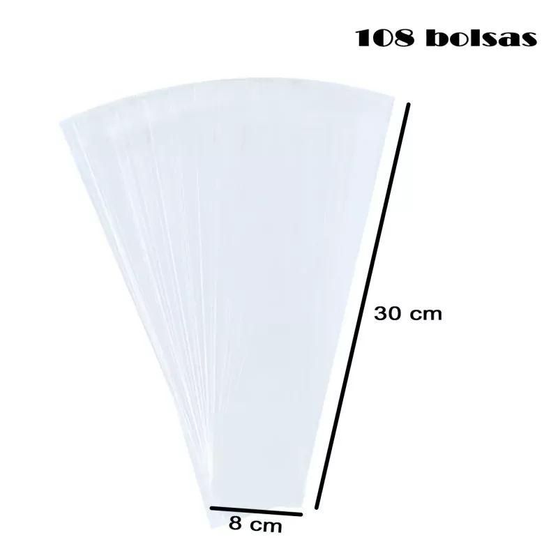 Este pack contiene 3 paquetes, sumando un total de 108 bolsas individuales, garantizando que nunca te quedes sin una opción confiable para envolver y decorar tus productos. Su material plástico transparente permite mostrar el contenido de forma atractiva mientras mantiene la frescura y seguridad de los alimentos o artículos que contengan.