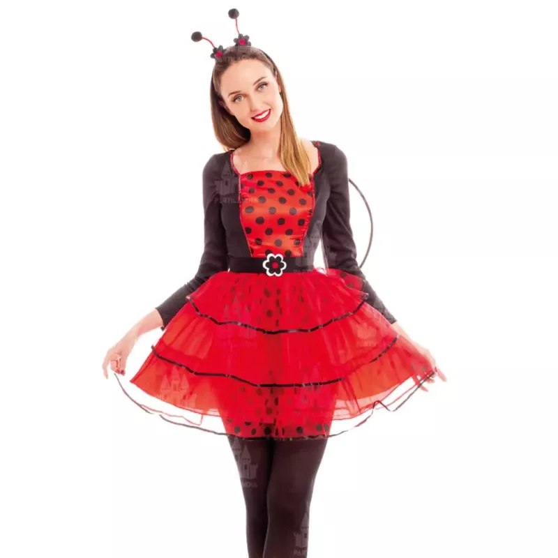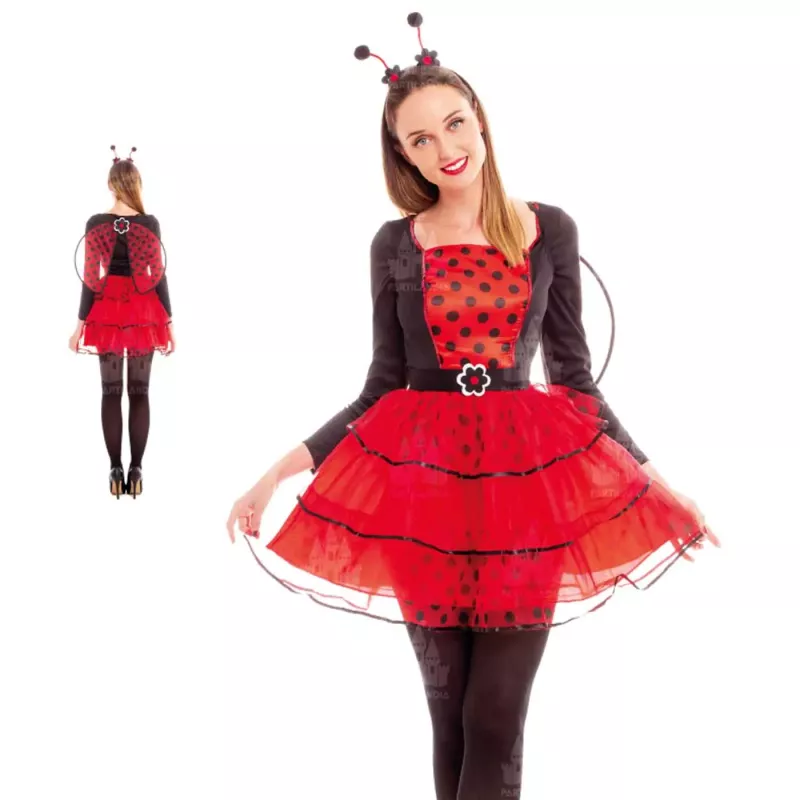 Disfrázate de manera divertida y original con este disfraz de mariquita, diseñado especialmente para adultos que buscan destacar en carnavales, fiestas de Halloween y eventos temáticos. Fabricado con fibra sintética de alta calidad, este conjunto ofrece comodidad y estilo para que te sientas única durante toda la celebración.