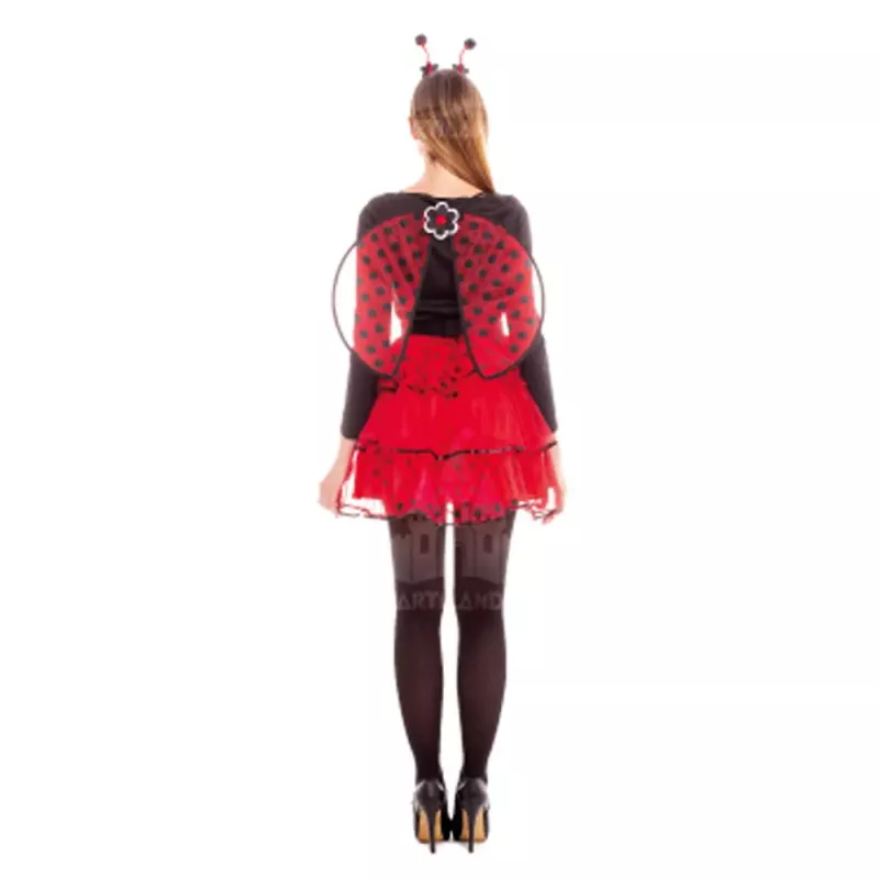 El disfraz incluye un vestido característico con detalles inspirados en la mariquita, una diadema que remata el look con antenas adorables y unas alas ligeras que completan el conjunto con un toque de realismo. Es importante destacar que los accesorios adicionales no están incluidos, por lo que puedes personalizar tu atuendo a tu gusto.