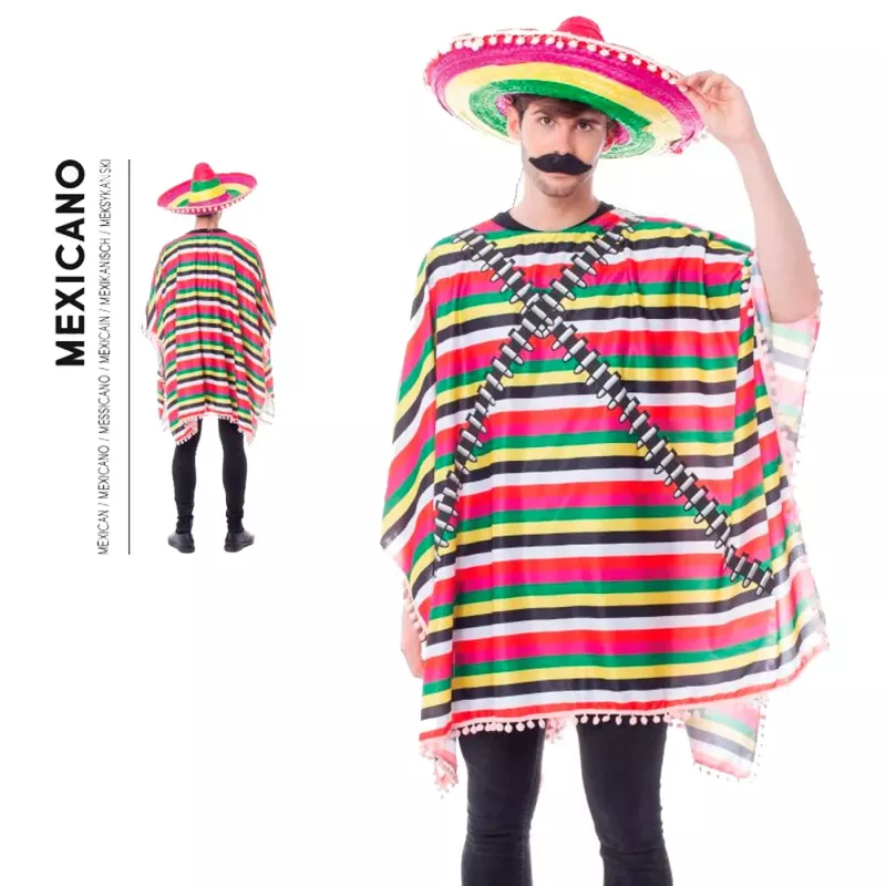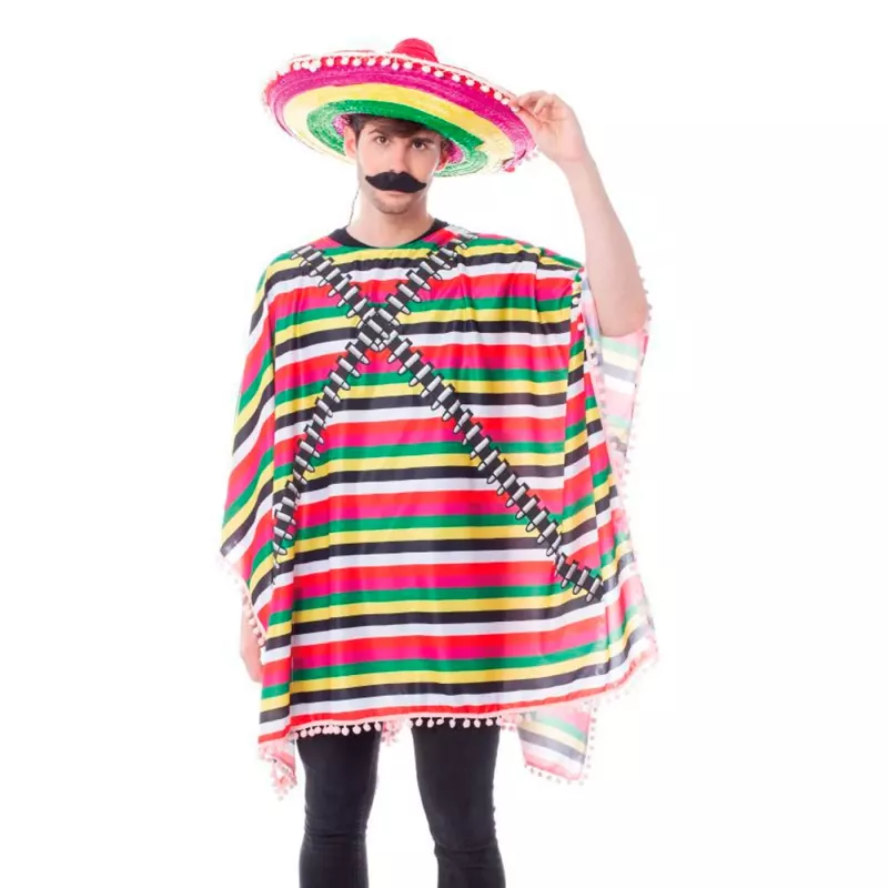 Este disfraz está fabricado en fibra sintética de alta calidad, lo que garantiza comodidad, durabilidad y fácil mantenimiento. Incluye un poncho colorido y característico que completa perfectamente el atuendo, aportando ese toque auténtico y vibrante que buscas.