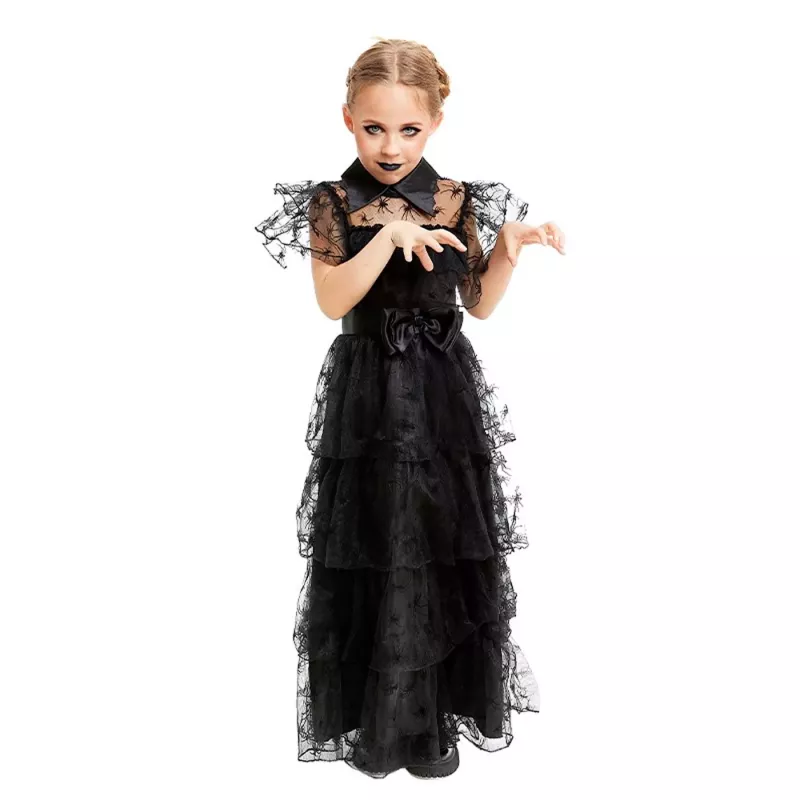 Transforma a tu pequeño en la reina de la oscuridad con el disfraz de gótica infantil Tradineur. Diseñado especialmente para niños de 5 a 6 años, este conjunto combina estilo y comodidad para que los más pequeños disfruten al máximo de Halloween, carnaval o cualquier fiesta temática. Confeccionado en poliéster de alta calidad, el vestido ofrece un acabado suave y resistente, mientras que el cinturón incluido aporta un toque auténtico y detallado que complementa el look gótico.