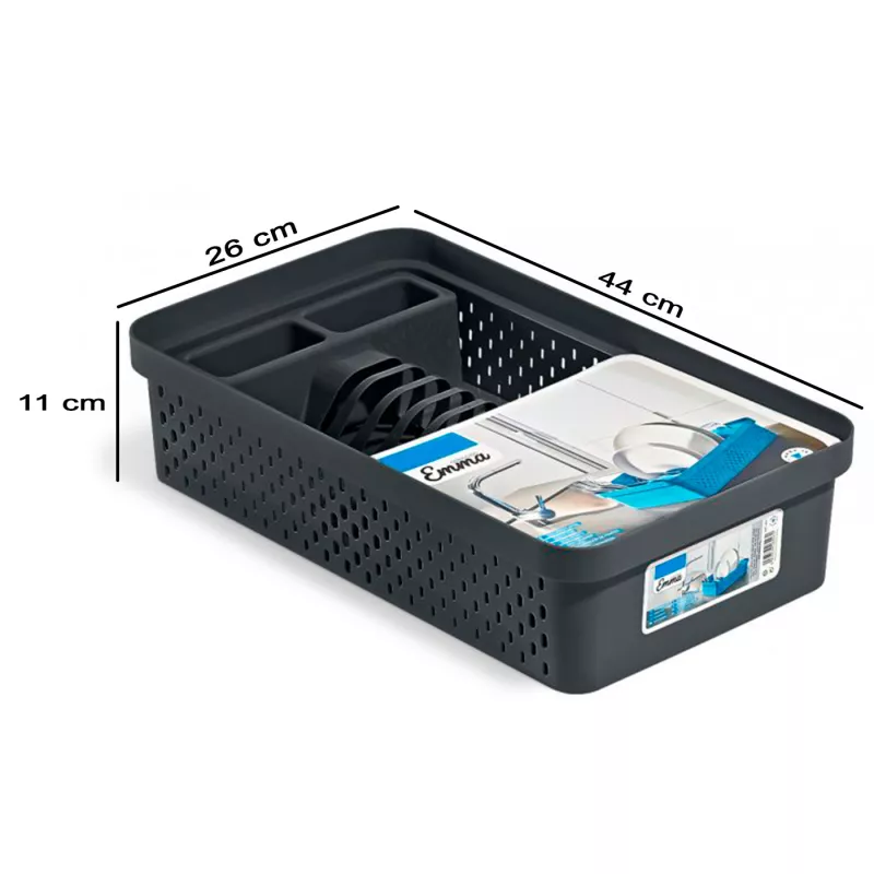 Gracias a su tamaño compacto de 44 x 26 x 11 cm (largo x ancho x alto), es ideal para el uso diario en cualquier cocina. Fabricado en plástico resistente y fácil de limpiar, ofrece durabilidad y comodidad. Su color gris marengo aporta un aspecto elegante que encaja perfectamente en cualquier entorno.