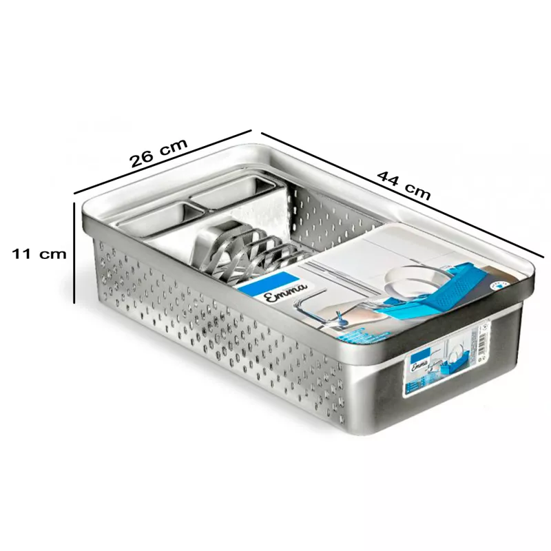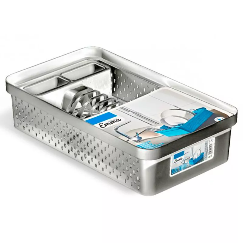 Gracias a su tamaño compacto de 44 x 26 x 11 cm (largo x ancho x alto), es ideal para el uso diario en cualquier cocina. Fabricado en plástico resistente y fácil de limpiar, ofrece durabilidad y comodidad. Su color gris plata aporta un aspecto original que encaja perfectamente en cualquier entorno.