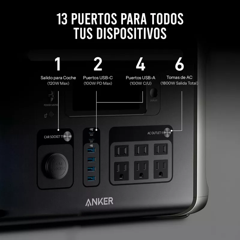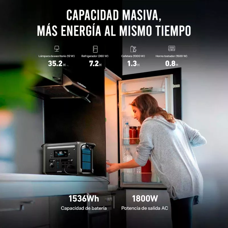 En resumen, la Anker SOLIX F1500 combina potencia masiva, recarga ultrarrápida, baterías duraderas y control inteligente, convirtiéndose en la estación de energía perfecta para aventuras al aire libre, emergencias o respaldo en el hogar.