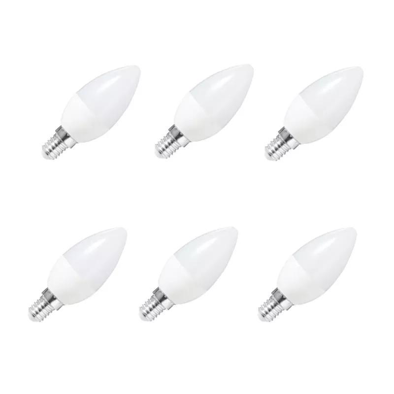 Este pack de 6 bombillas LED tipo vela con base E14 es la solución perfecta para iluminar tus espacios con una luz blanca fría de alta calidad. Cada bombilla ofrece una potencia de 4W, equivalente a una bombilla tradicional de mayor consumo, pero con un ahorro energético de hasta un 85%. Con una temperatura de color de 6400K y una luminosidad de 360 lúmenes, proporcionan una iluminación clara y brillante ideal para cualquier ambiente que requiera una luz fresca y revitalizante.