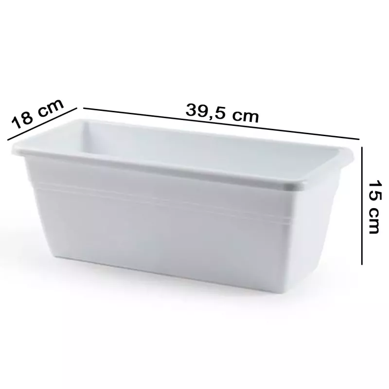 Con una longitud de 40 cm y un diseño funcional en color blanco, el tiesto ofrece un recipiente espacioso y versátil que realza la belleza natural de tus plantas y flores. Su estructura está diseñada para facilitar el drenaje y garantizar un crecimiento saludable, mientras que su estética moderna y neutra se adapta fácilmente a cualquier decoración.