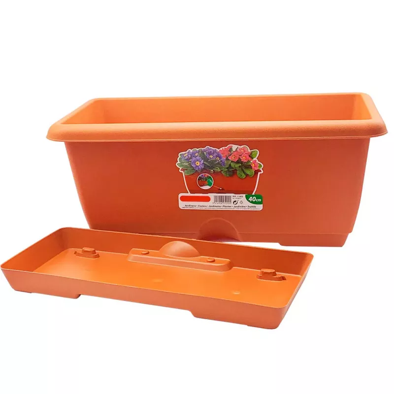 El macetero está fabricado en plástico polipropileno resistente y de gran calidad, lo que asegura su durabilidad y resistencia a diferentes condiciones climáticas. Por fuera, mide aproximadamente 40 x 19 x 17 cm (largo x ancho x alto), proporcionando el espacio ideal para cultivar tus plantas favoritas. Gracias a su capacidad de 8 litros, podrás sembrar una variedad de flores, hierbas o plantas ornamentales, añadiendo un toque natural y acogedor a tus espacios.