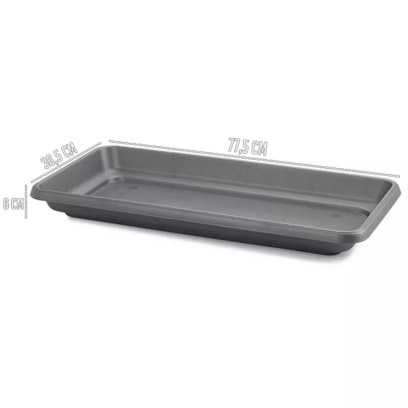 Con unas medidas de 7 x 36,5 x 77,5 cm, este plato jardinera ofrece el tamaño ideal para alojar macetas rectangulares de hasta 80 cm, facilitando el riego y evitando el estancamiento de agua, protegiendo así las raíces de tus plantas. Su estructura ligera permite una fácil manipulación y traslado, mientras que su color neutro aporta elegancia y se integra fácilmente con cualquier estilo decorativo.
