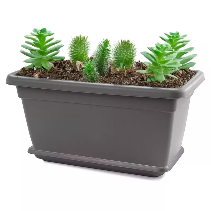 El Tradineur Plato Jardinera de 80 cm es la solución perfecta para quienes buscan una maceta funcional y estética para sus plantas y flores. Fabricado en plástico resistente y de alta calidad, este macetero rectangular combina durabilidad y un diseño moderno en color antracita, adaptándose a cualquier espacio exterior o interior como terrazas, balcones o jardines.
