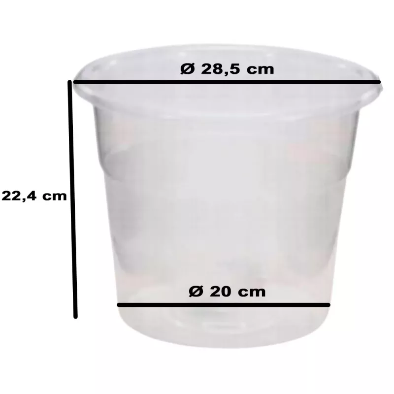 Descubre la elegancia y versatilidad de nuestra maceta redonda transparente. Con medidas aproximadas de 28,5 x 22,4 cm (diámetro superior x altura), esta maceta es perfecta para embellecer cualquier rincón de tu hogar o negocio. Su diseño transparente te permitirá disfrutar de la belleza de tus plantas, mientras que su diámetro interior de 25 cm y el diámetro de la base de 20 cm garantizan un espacio adecuado para el crecimiento de tus flores y plantas favoritas.