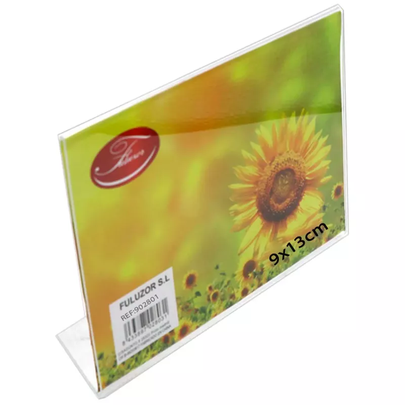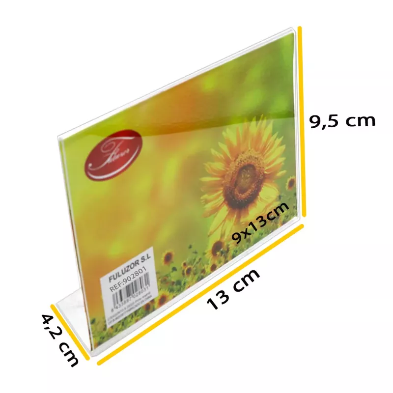 Fabricado de plástico rígido y resistente, garantiza durabilidad y seguridad para tus imágenes. Su ligero peso lo convierte en una opción muy práctica, permitiéndote moverlo y reubicarlo con facilidad según tus necesidades. Las dimensiones de este producto son de aproximadamente 9,5 x 13 cm (alto x ancho), con una base sólida de 13 x 4,2 cm que proporciona estabilidad y soporte.