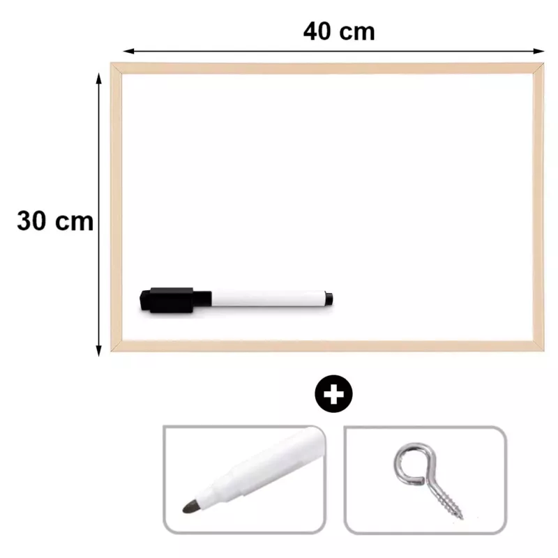 Esta pizarra blanca de 30 x 40 cm es ideal para dar clases a grupos pequeños y para la educación en el hogar. También es útil para dejar un mensaje para tu familia, hacer una lista de tareas, de la compra, etc. Además, los niños la podrán utilizar para escribir, dibujar o hacer los deberes. El marco es de madera de color natural y la superficie blanca permite escribir con un rotulador de borrado en seco (incluido).
