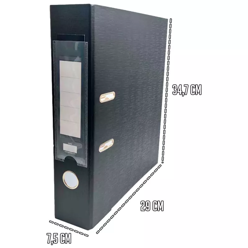 - Lomo de 7,5 cm de ancho: Proporciona suficiente espacio para almacenar gran cantidad de hojas manteniendo un perfil compacto.