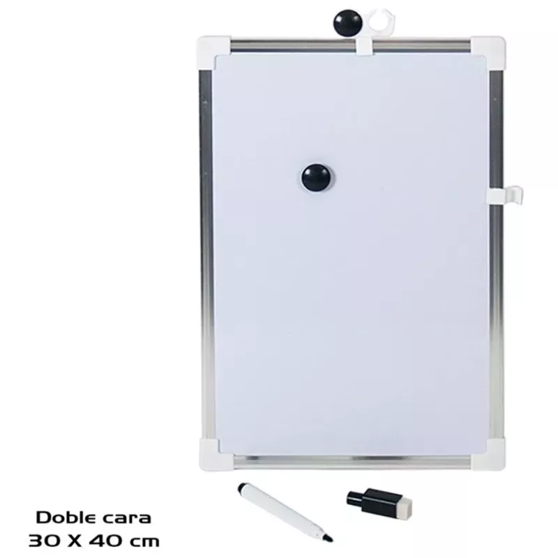 La Tradineur - Pizarra Magnética de doble cara es la herramienta perfecta para mantener tus ideas, notas y mensajes organizados de forma práctica y visual. Con un diseño funcional y versátil, esta pizarra de 40 x 30 cm cuenta con un marco de aluminio resistente que garantiza durabilidad y un estilo moderno que se adapta a cualquier ambiente.