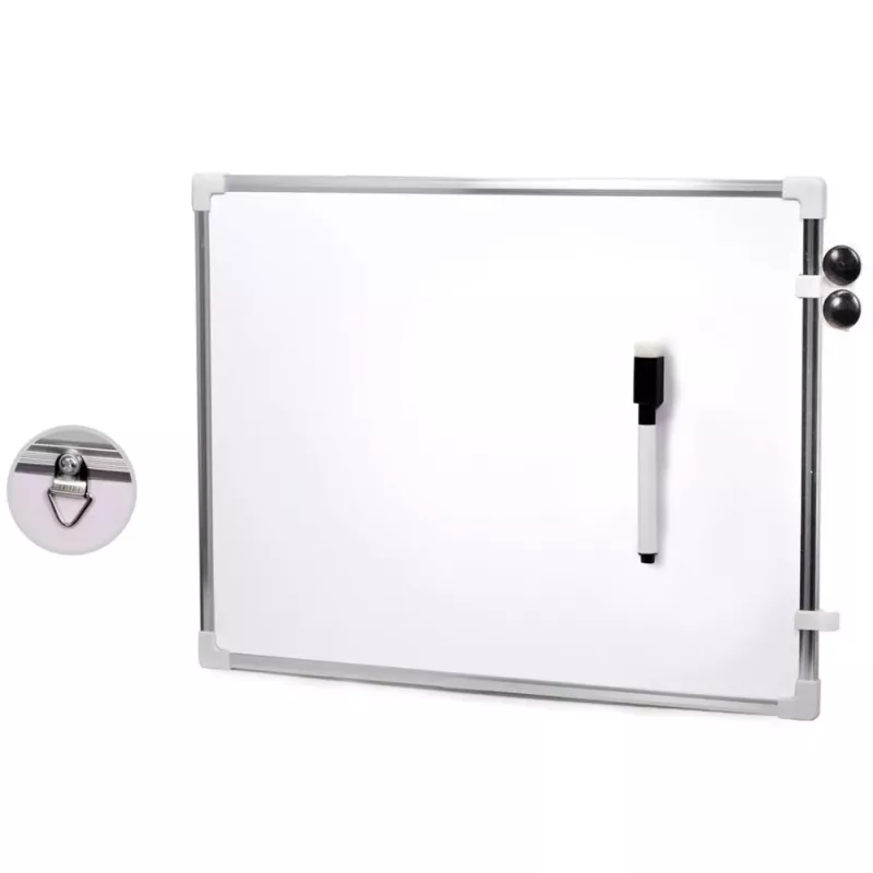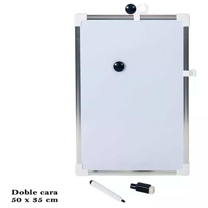- Doble cara magnética: Cuenta con dos superficies para aprovechar al máximo el espacio, permitiendo escribir o colocar notas con imanes por ambos lados.