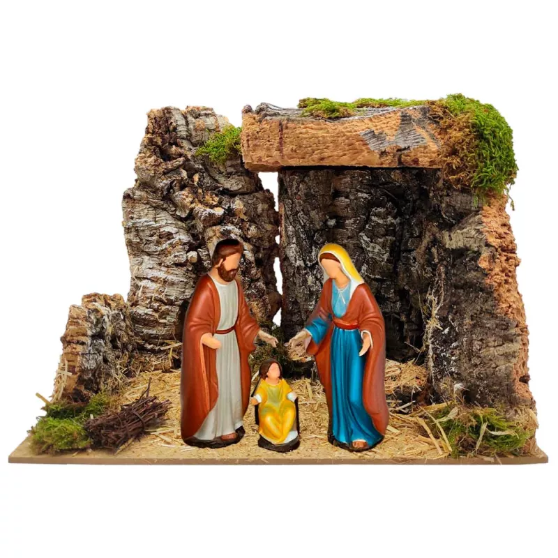 Decorada con musgo verde y vegetación, esta cueva transmite un aire natural que complementa a la perfección las figuras del nacimiento. Con un tamaño aproximado de 30 x 20 x 22 cm (largo x ancho x alto), resulta ideal para belenes medianos, aportando un toque artesanal y realista que hará que la escena navideña luzca más completa y acogedora.